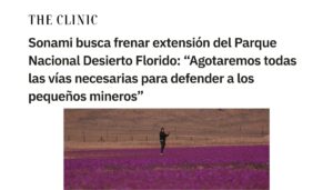 SONAMI busca frenar extensión del Parque Nacional Desierto Florido: “Agotaremos todas las vías necesarias para defender a los pequeños mineros” agosto 25, 2025 Leer más »