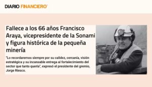 Fallece a los 66 años Francisco Araya, vicepresidente de la SONAMI y figura histórica de la pequeña minería agosto 2, 2025 Leer más »
