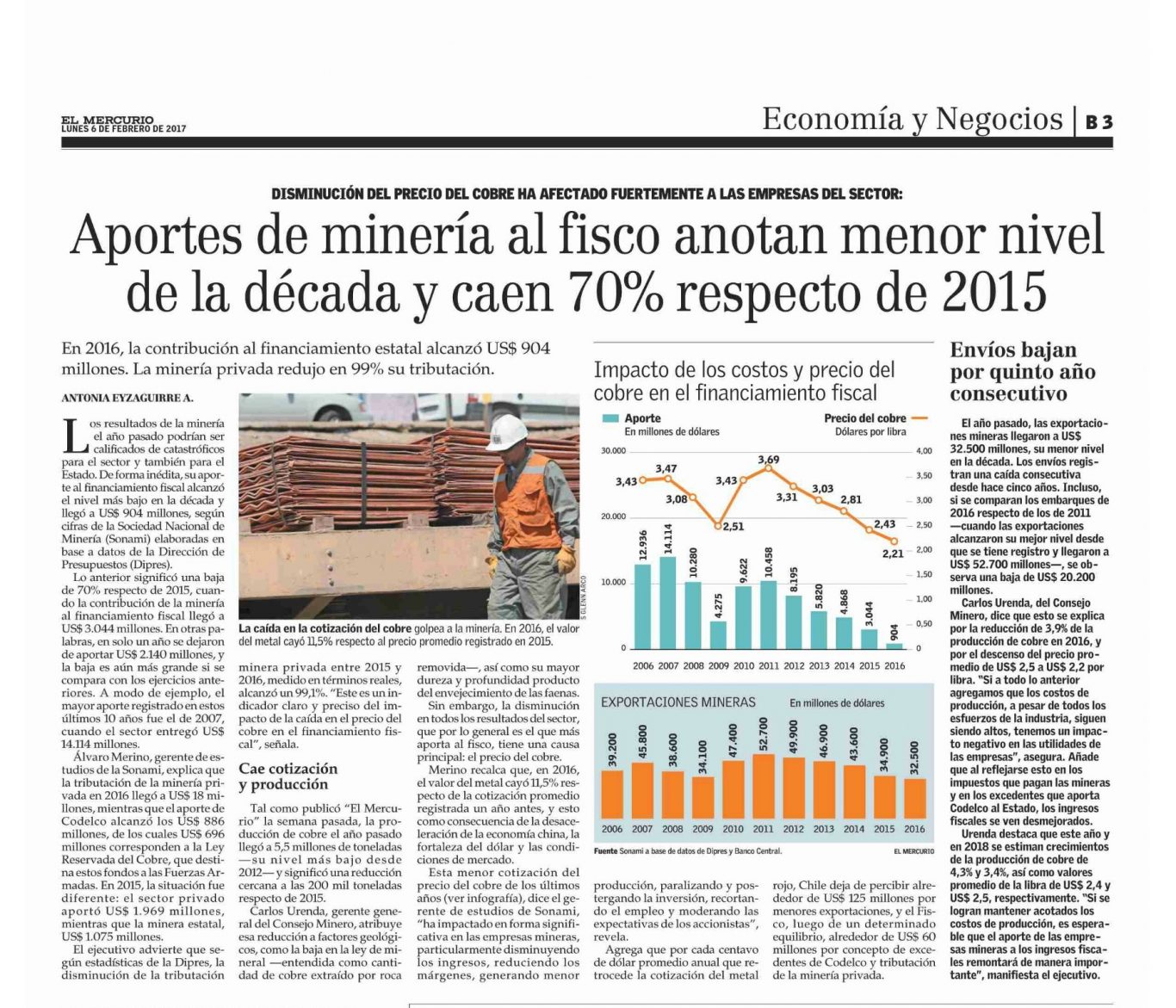 Noticias Sala de Prensa Aportes de la minería al fisco cayeron en 2016 a su nivel más bajo en una década