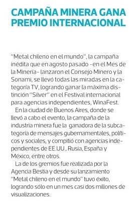 Cobre 5.56 (US$/lb) | Dólar $915.95 (CLP) | UF $39841.72 (CLP) | UTM $69889 (CLP) | Euro $1062.96 (CLP)