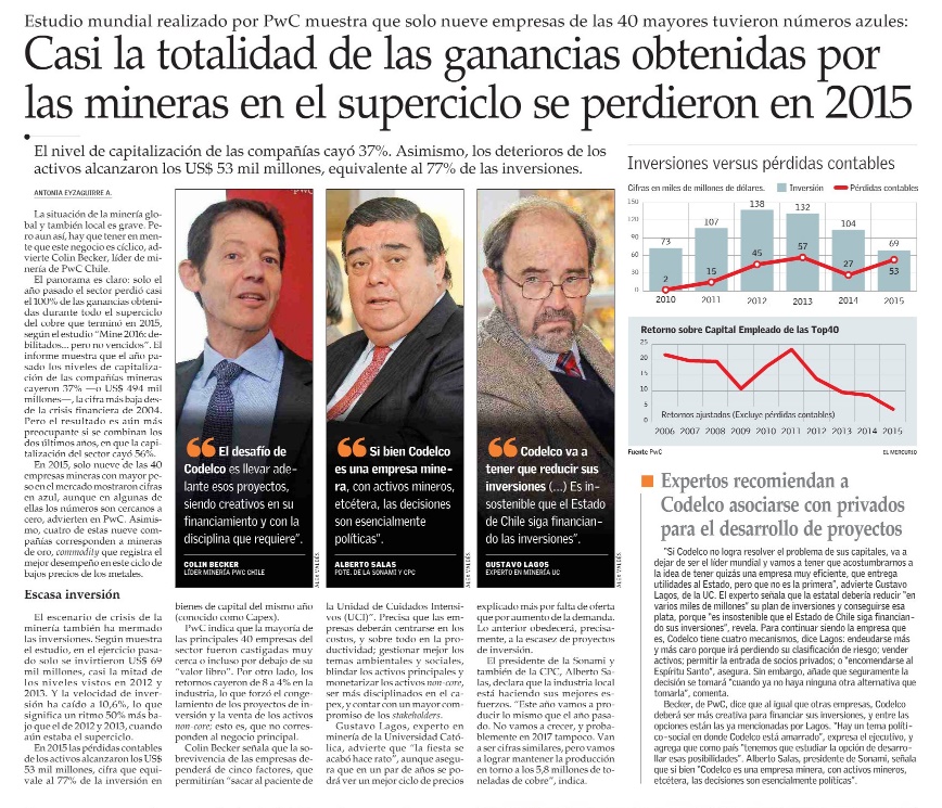 Noticias Sala de Prensa Casi la totalidad de las ganancias obtenidas por las mineras en el superciclo se perdieron en 2015
