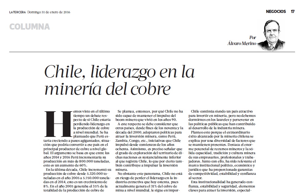 Alvaro Merino: Chile, liderazgo en la minería del cobre