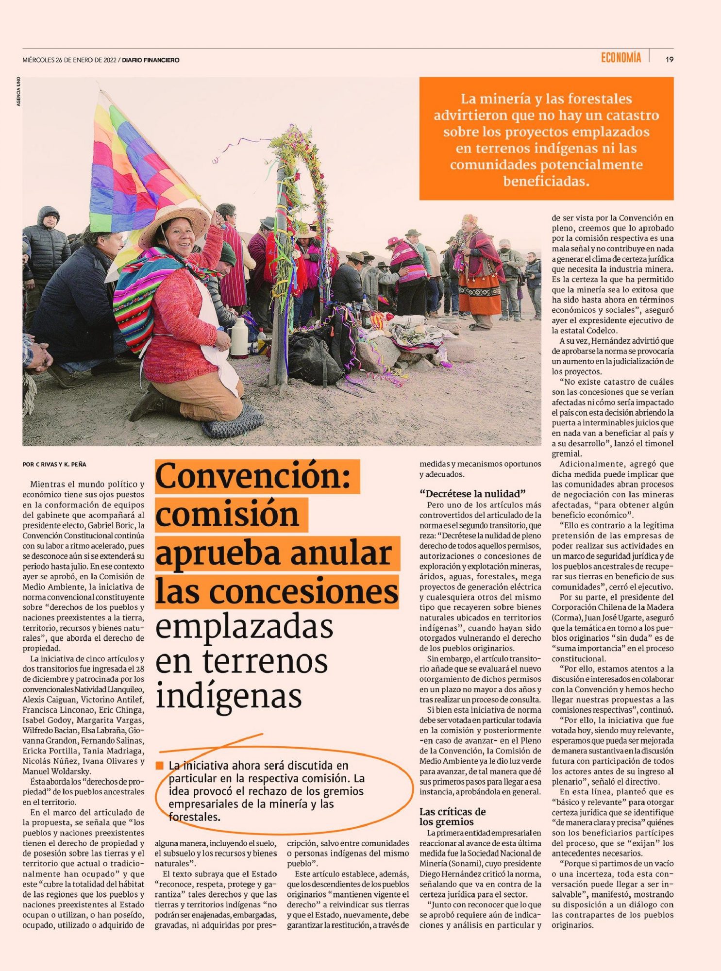 Noticias Sala de Prensa Convención: Comisión aprueba anular las concesiones emplazadas en terrenos indígenas