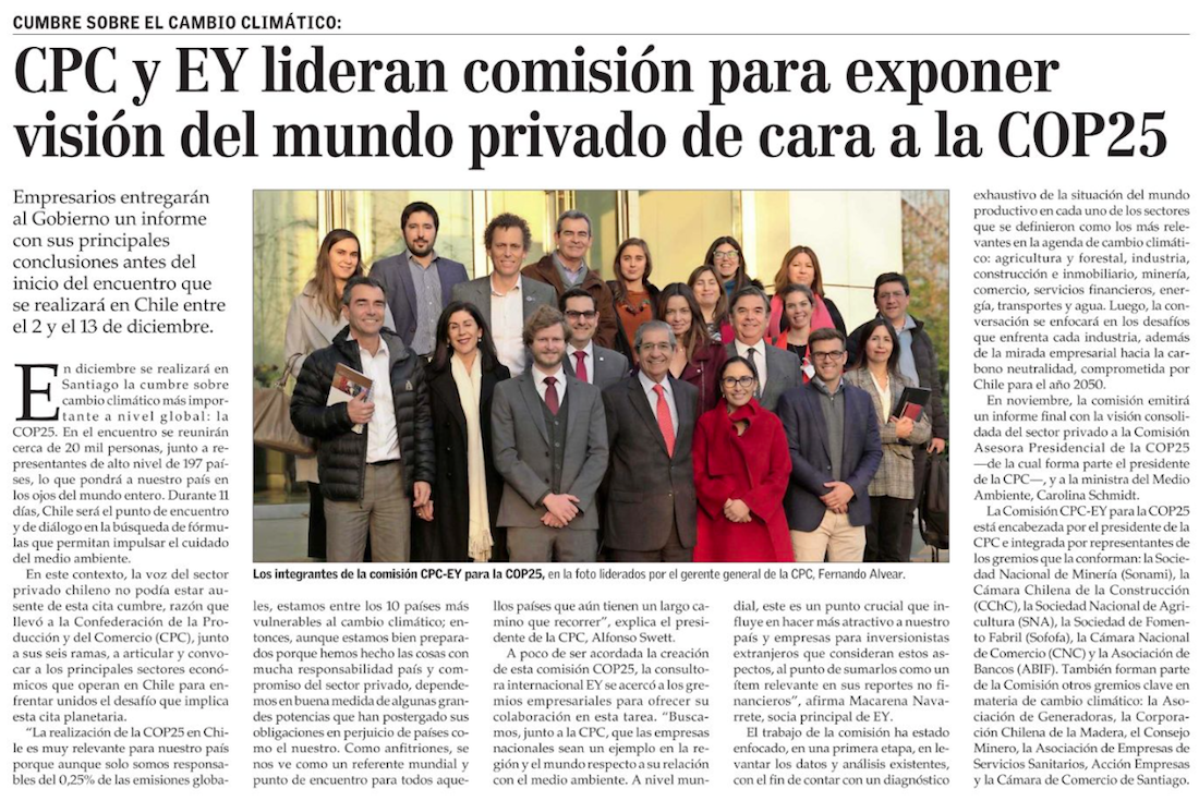 Noticias Sala de Prensa CPC y EY lideran comisión para exponer visión del mundo privado de cara a la COP25