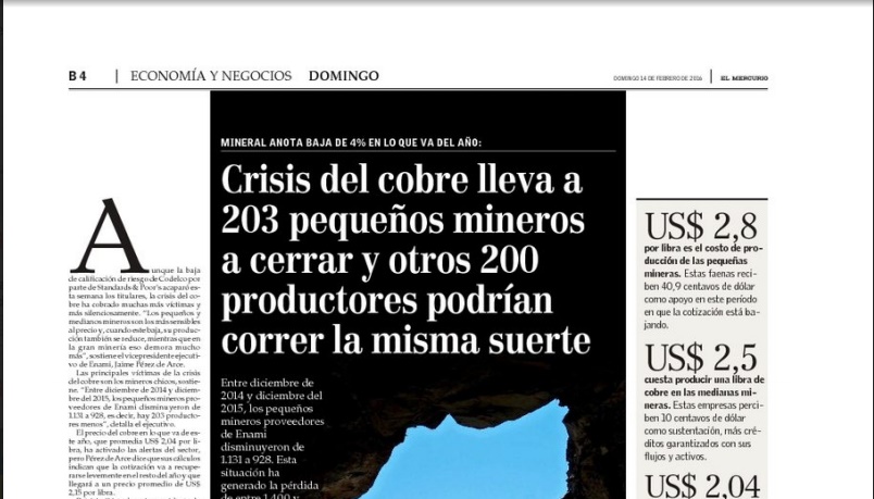 Noticias Sala de Prensa Crisis del cobre lleva a 203 pequeños mineros a cerrar y otros 200 productores podrían correr la misma suerte