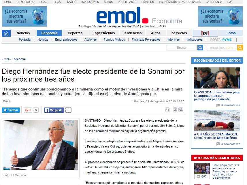 Diego Hernández fue electo presidente de SONAMI por los próximos tres años
