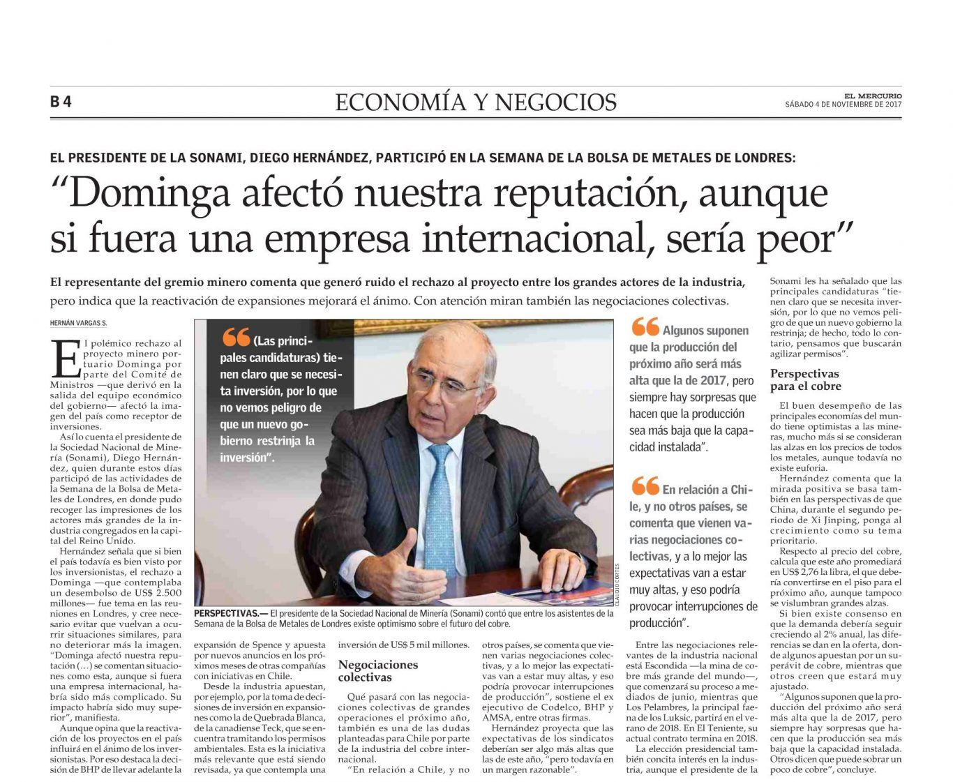 Noticias Sala de Prensa “Dominga afectó nuestra reputación, aunque si fuera una empresa internacional, sería peor”