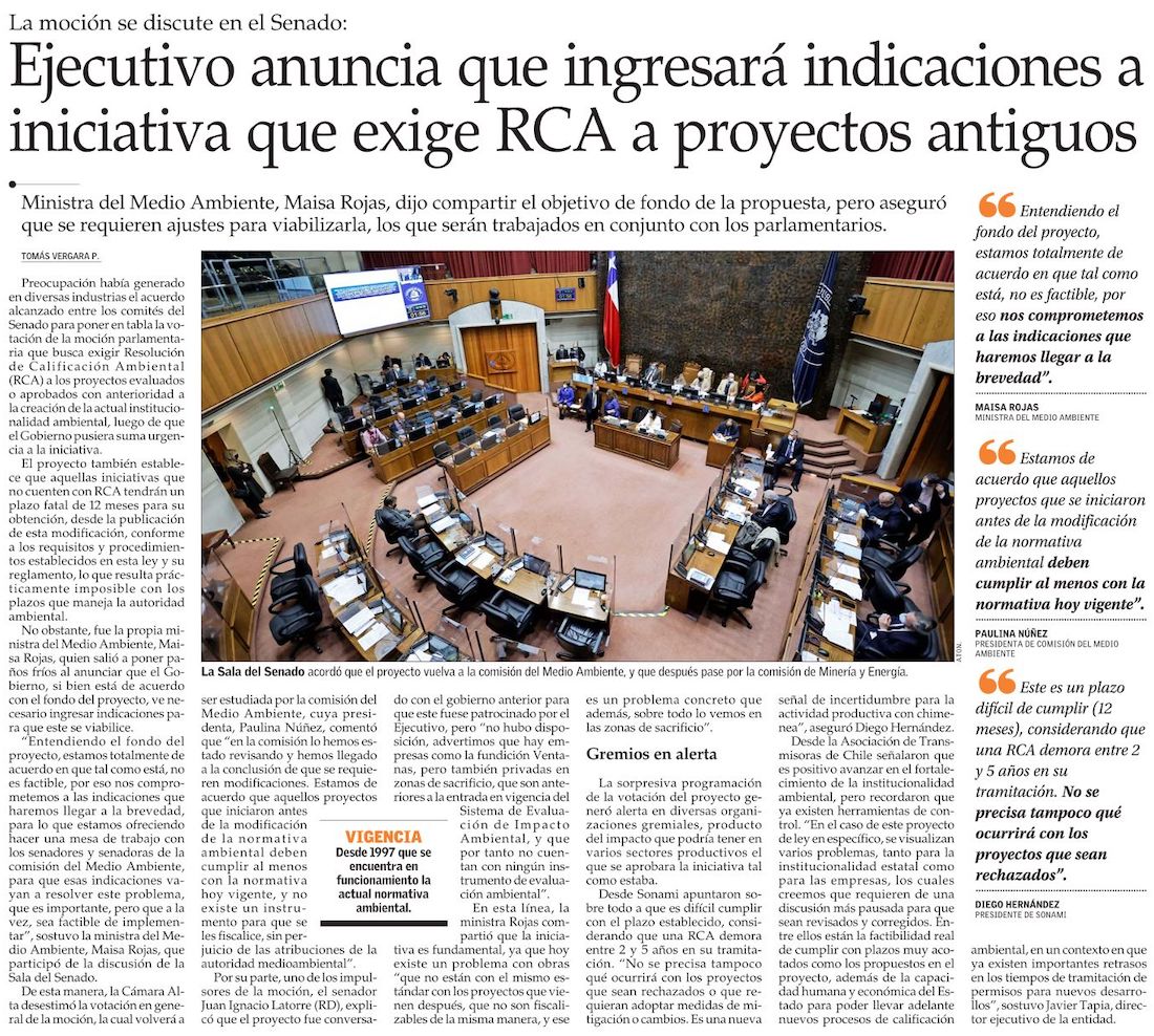 Noticias Sala de Prensa Ejecutivo anuncia que ingresará indicaciones a iniciativa que exige RCA a proyectos antiguos