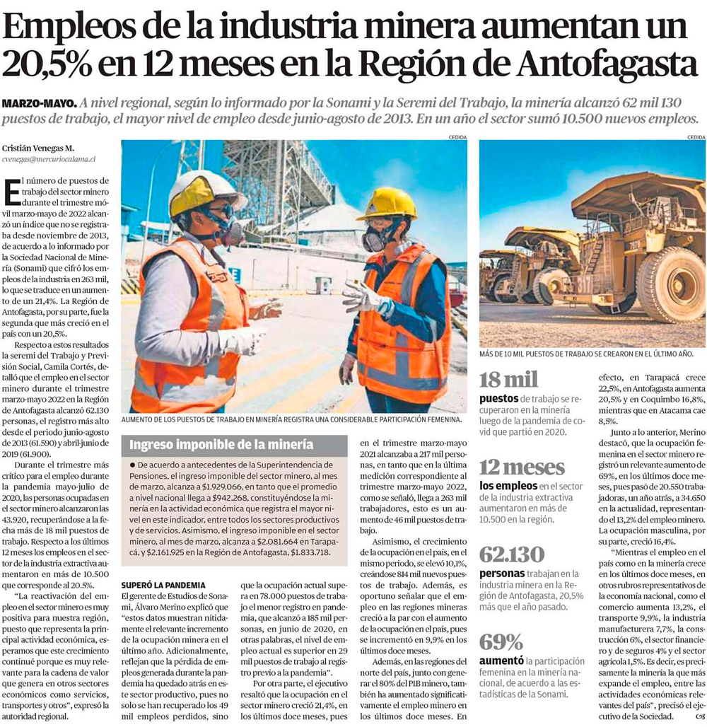 Noticias Sala de Prensa Empleos de la industria minera aumentan un 20,5% en 12 meses en la Región de Atacama