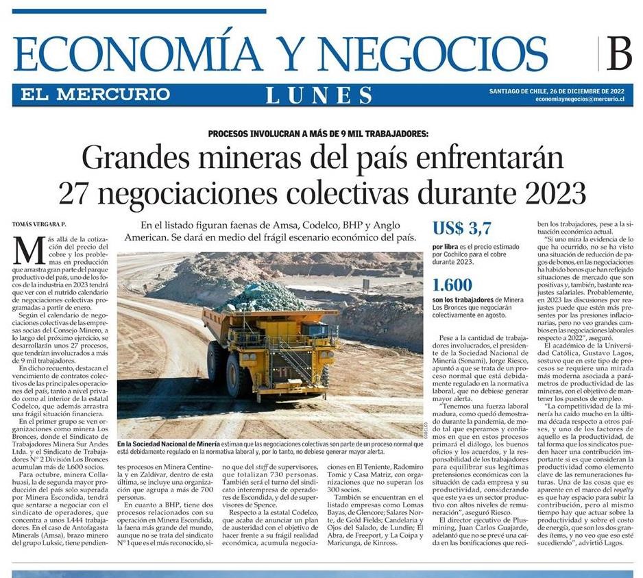 Noticias Sala de Prensa Grandes mineras del país enfrentarán 27 negociaciones colectivas durante 2023