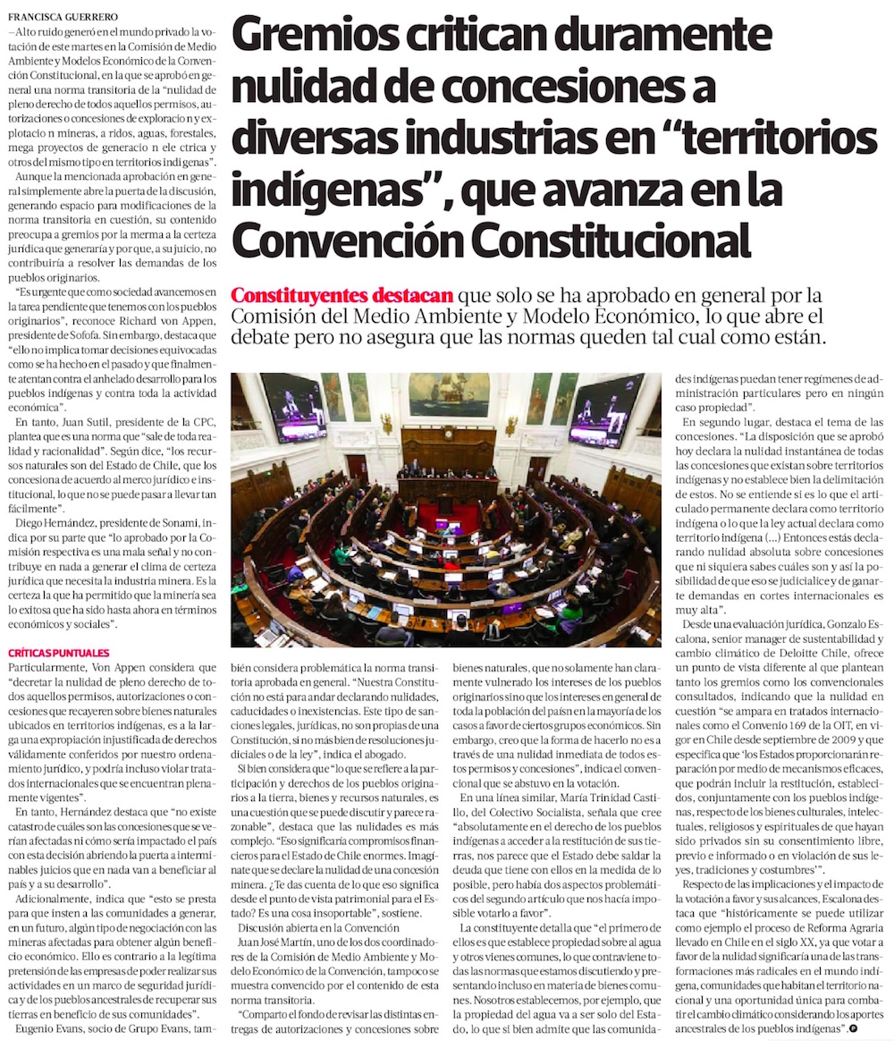 Noticias Sala de Prensa Gremios critican duramente nulidad de concesiones a diversas industrias en “territorios indígenas”, que avanza en la Convención Constitucional