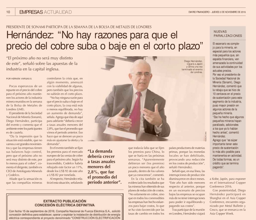 Noticias Sala de Prensa Hernández: “No hay razones para que el precio del cobre suba o baje en el corto plazo”
