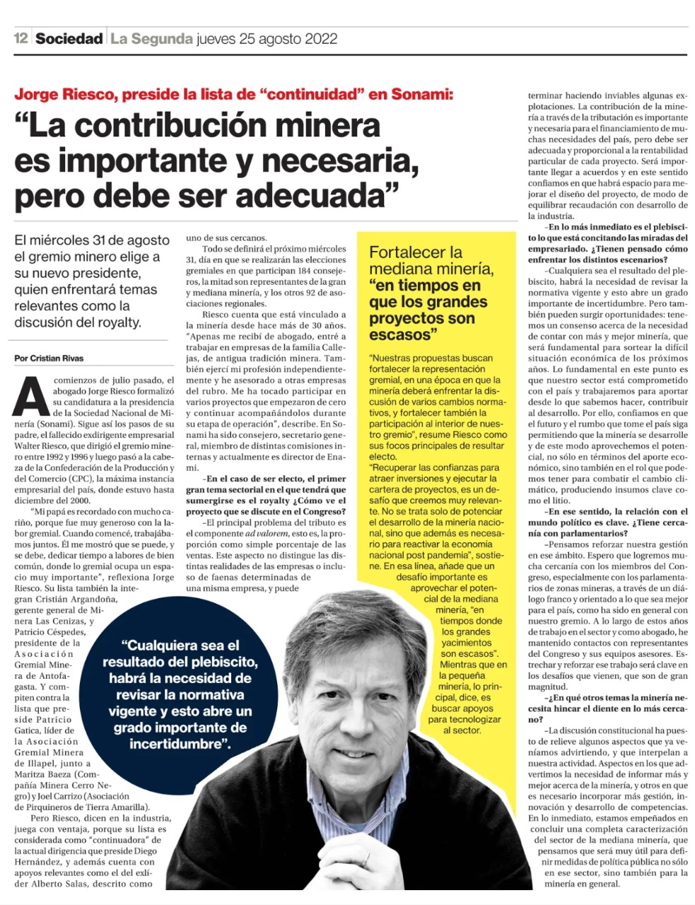 Noticias Sala de Prensa Jorge Riesco: “La contribución minera es importante y necesaria, pero debe ser adecuada”
