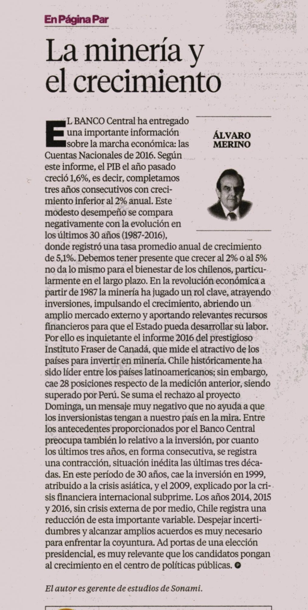 Cobre 5.56 (US$/lb) | Dólar $915.95 (CLP) | UF $39841.72 (CLP) | UTM $69889 (CLP) | Euro $1062.96 (CLP)