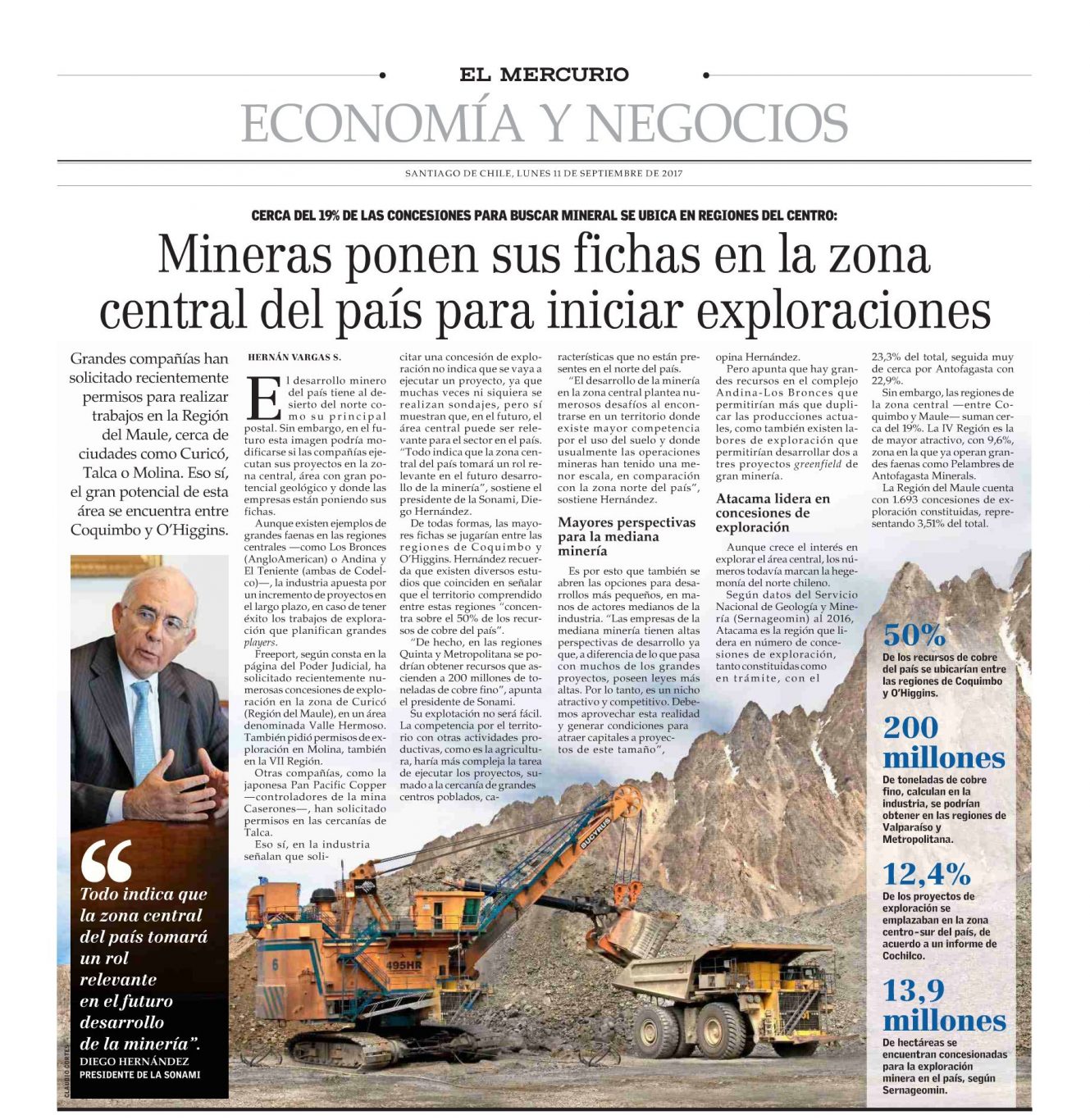 Noticias Sala de Prensa Mineras ponen sus fichas en la zona central del país para iniciar exploraciones