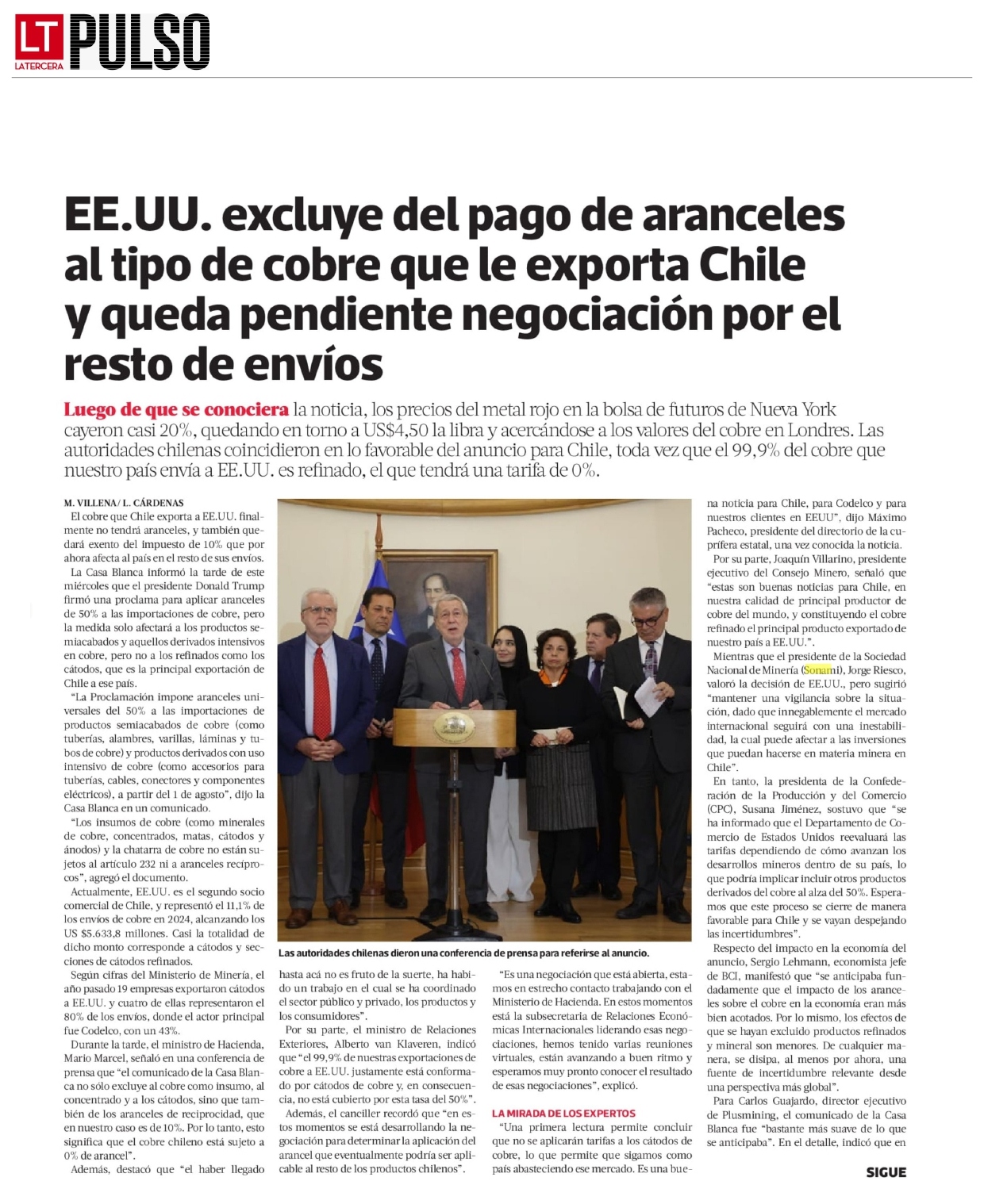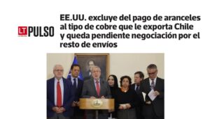 EE.UU excluye del pago de aranceles al tipo de cobre que le exporta Chile y que queda pendiente negociación por el resto de envíos julio 31, 2025 Leer más »