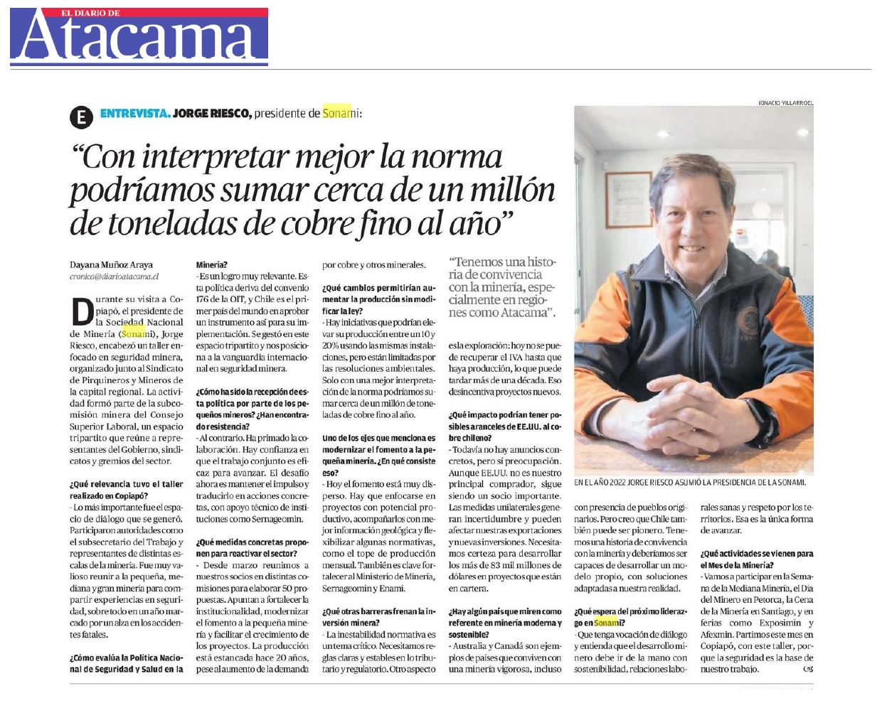 Jorge Riesco: «Con interpretar mejor la norma podríamos sumar cerca de un millón de toneladas de cobre fino al año» julio 31, 2025 Leer más »