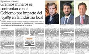 Gremios mineros se confrontan con el gobierno por impacto del royalty en la industria local noviembre 17, 2022 Leer más »