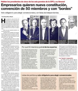 Empresarios quieren nueva constitución, convención de 50 miembros y con «bordes» septiembre 30, 2022 Leer más »