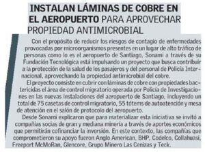 Instalan láminas de cobre en aeropuerto para aprovechar propiedad antimicrobial junio 29, 2022 Leer más »