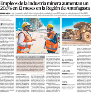 Empleos de la industria minera aumentan un 20,5% en 12 meses en la Región de Atacama julio 5, 2022 Leer más »