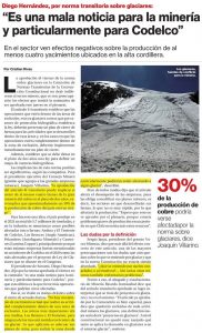 Diego Hernández, por norma transitoria sobre glaciares: «Es una mala noticia para la minería y particularmente para Codelco» mayo 30, 2022 Leer más »