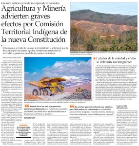 Agricultura y minería advierten graves efectos por Comisión Territorial Indígena de la nueva Constitución junio 16, 2022 Leer más »
