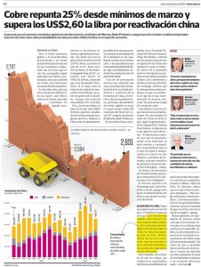 Cobre repunta 25% desde mínimos de marzo y supera los US$ 2,60 la libra por reactivación china junio 11, 2020 Leer más »