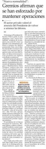Gremios empresariales coinciden en retomar gradualmente a las actividades presenciales abril 21, 2020 Leer más »