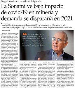SONAMI ve bajo impacto del Covid-19 en minería y demanda se dispararía en 2021 mayo 6, 2020 Leer más »