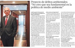 Proyecto de delitos ambientales: «No creo que sea fundamental en la política de medio ambiente»
