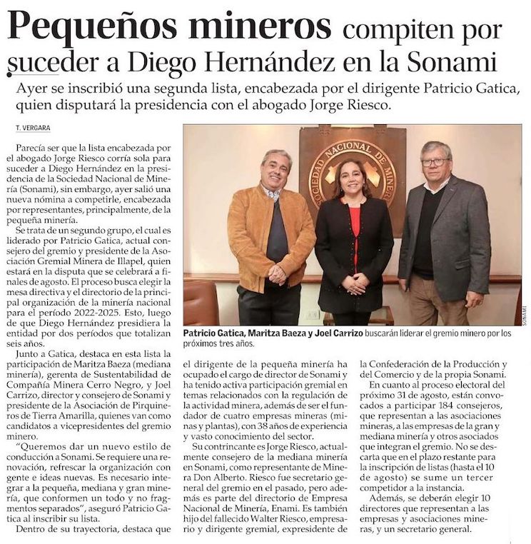 Pequeño minero compite por suceder a Diego Hernández en SONAMI