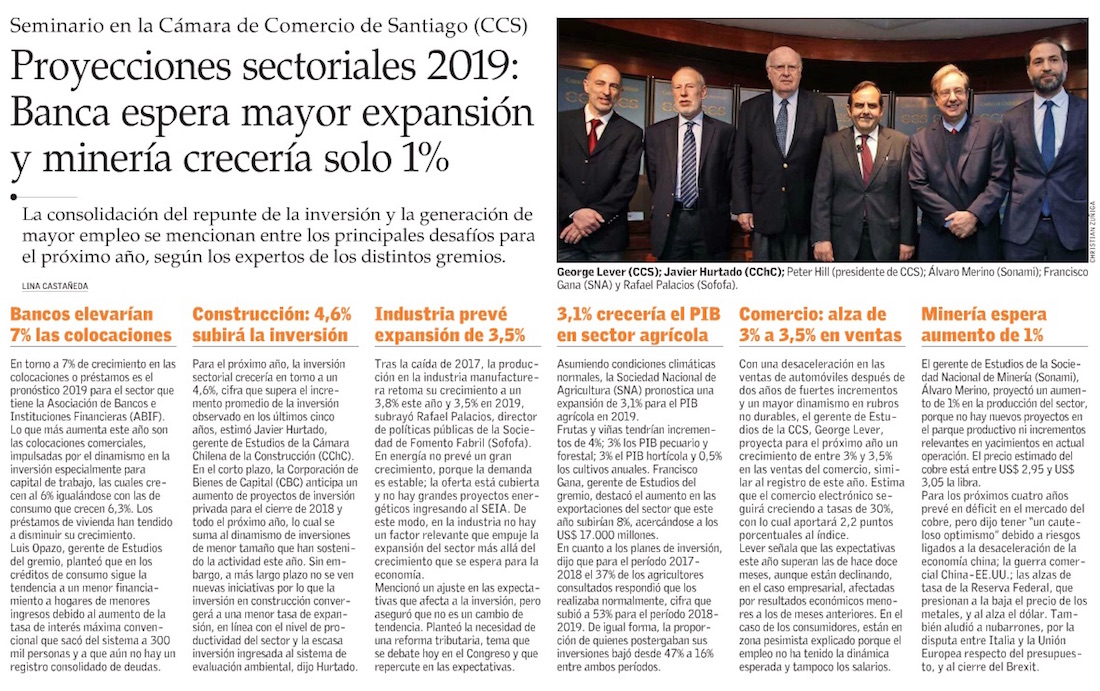 Noticias Sala de Prensa Proyecciones sectoriales 2019: Banca espera mayor expansión y minería crecería solo 1%