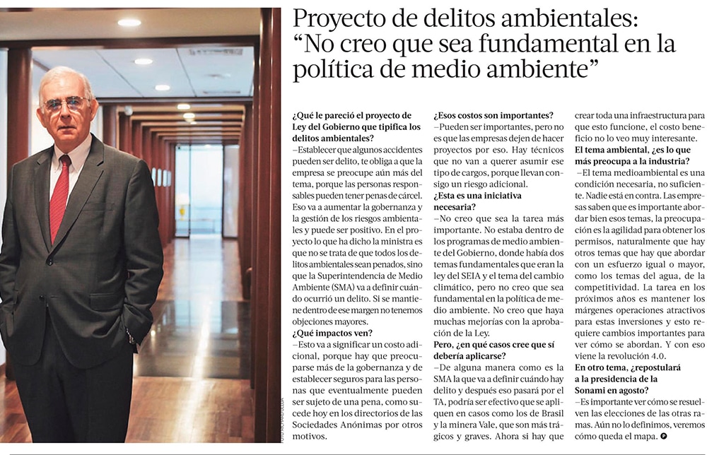 Noticias Sala de Prensa Proyecto de delitos ambientales: “No creo que sea fundamental en la política de medio ambiente”