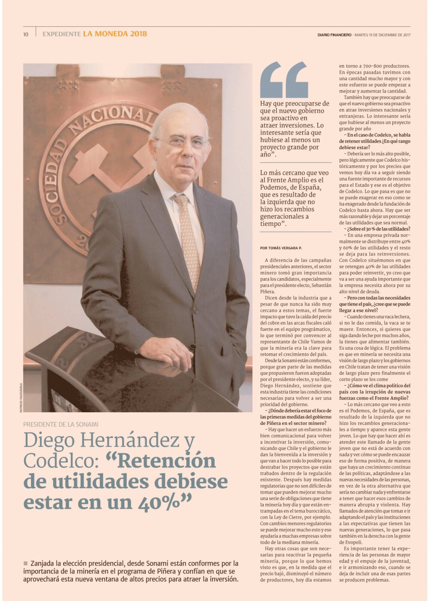 “Retención de utilidades debería estar en un 40%”