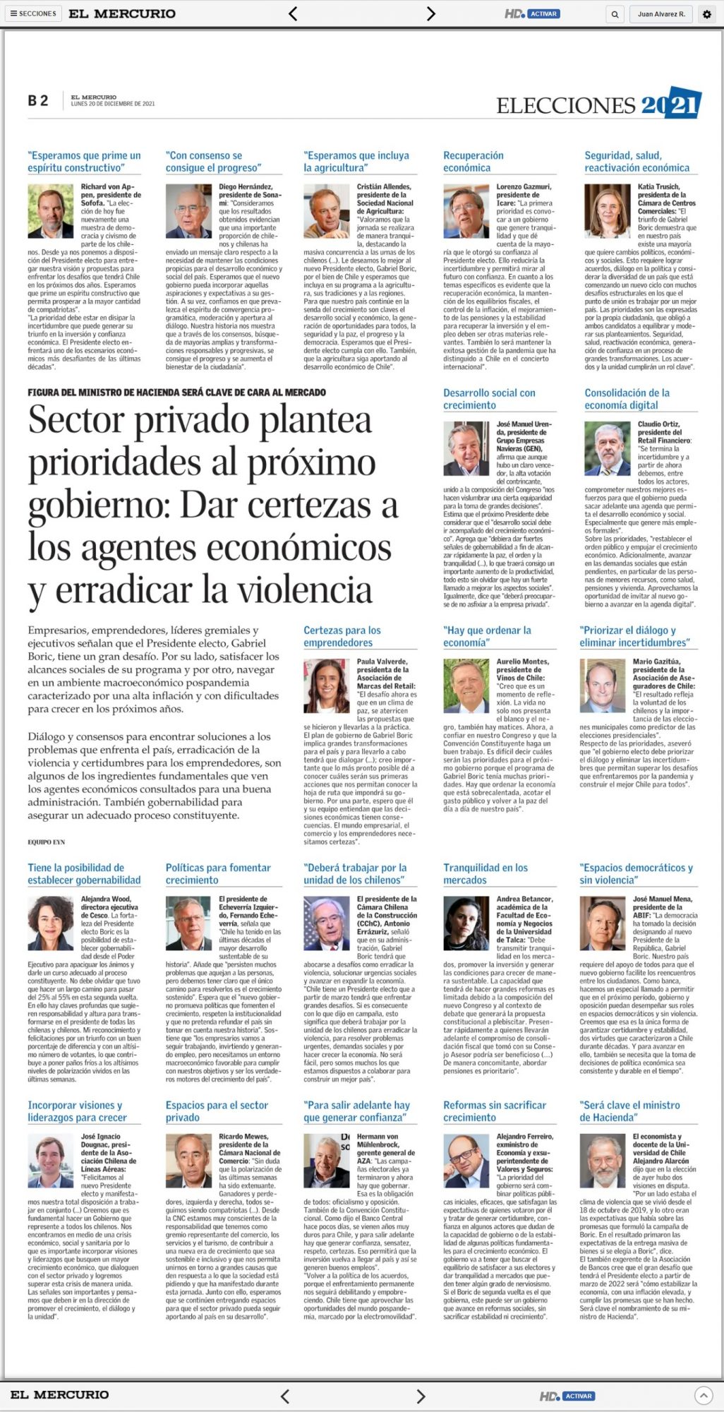 Noticias Sala de Prensa Sector privado plantea prioridades al próximo gobierno: Dar certezas a los agentes económicos y erradicar la violencia