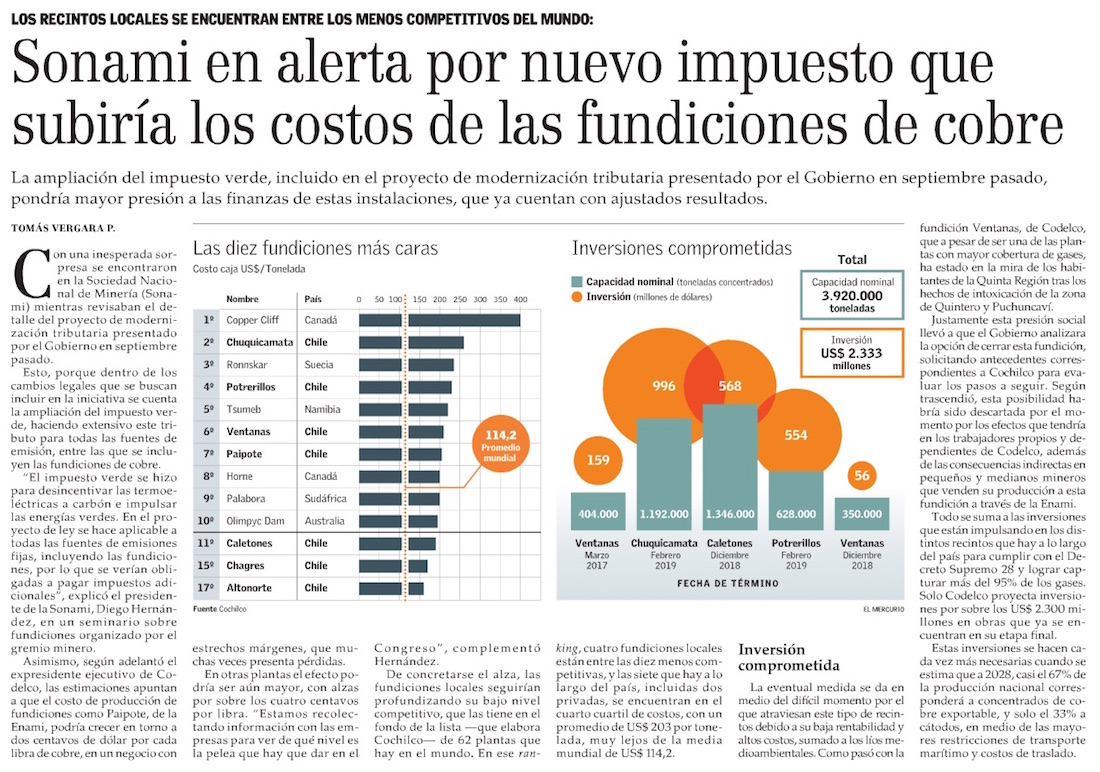 Noticias Sala de Prensa SONAMI en alerta por nuevo impuesto que subiría los costos de las fundiciones de cobre