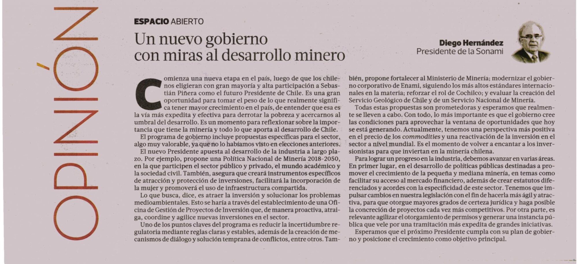 Un nuevo gobierno con miras al desarrollo minero