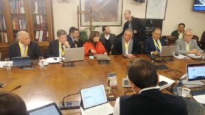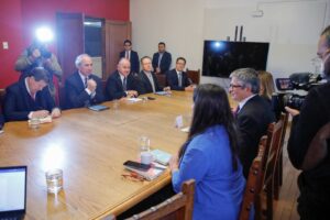 El presidente de la Sociedad Nacional de Minería (SONAMI), Jorge Riesco, acompañado del vicepresidente Patricio Céspedes, concurrió a la Comisión de Minería de la Cámara