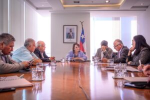 La ministra de Minería, Marcela Hernando, junto al vicepresidente Ejecutivo de Cochilco, Joaquín Morales y el asesor del Gabinete , Juan Medrano, recibieron a los