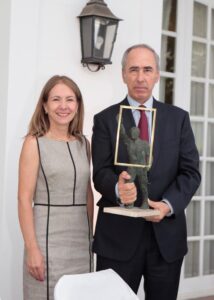 El presidente de la Sociedad Nacional de Minería, Jorge Riesco, saludó a la directora del gremio, Amparo Cornejo, por su nombramiento como vicepresidenta para Sudamérica