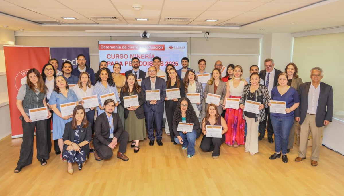 La Sociedad Nacional de Minería (SONAMI) concluyó exitosamente la 14° versión de su Curso de Minería para Periodistas, iniciativa que durante dos meses fortaleció los conocimientos técnicos de comunicadores del sector minero y otros rubros. El programa de formación, que se desarrolló de manera presencial y online desde el 2 de octubre hasta el 4 de diciembre de 2025, logró capacitar a 52 profesionales periodistas de medios de comunicación, empresas mineras, organismos públicos y asociaciones gremiales.