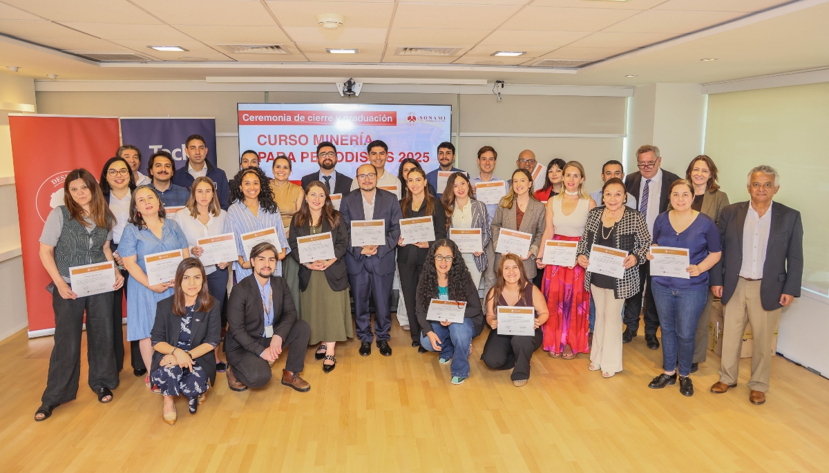 La Sociedad Nacional de Minería (SONAMI) concluyó exitosamente la 14° versión de su Curso de Minería para Periodistas, iniciativa que durante dos meses fortaleció los conocimientos técnicos de comunicadores del sector minero y otros rubros. El programa de formación, que se desarrolló de manera presencial y online desde el 2 de octubre hasta el 4 de diciembre de 2025, logró capacitar a 52 profesionales periodistas de medios de comunicación, empresas mineras, organismos públicos y asociaciones gremiales.