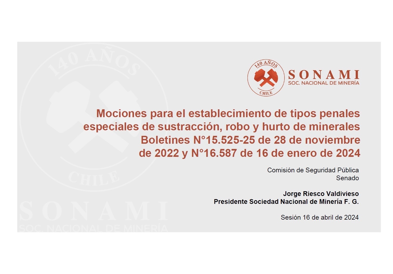 IMPULSAMOS EL DESARROLLO PRODUCTIVO Y EL PERFECCIONAMIENTO INSTITUCIONAL Y LEGAL DE LA MINERÍA NACIONAL, FOMENTANDO LAS MEJORES PRÁCTICAS PARA CONSTRUIR MEJORES REALIDADES PARA CHILE Y SU GENTE